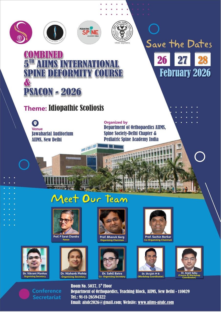 COMBINED 5แตแดด AIIMS INTERNATIONAL SPINE DEFORMITY COURSE & PSACON โ 2026